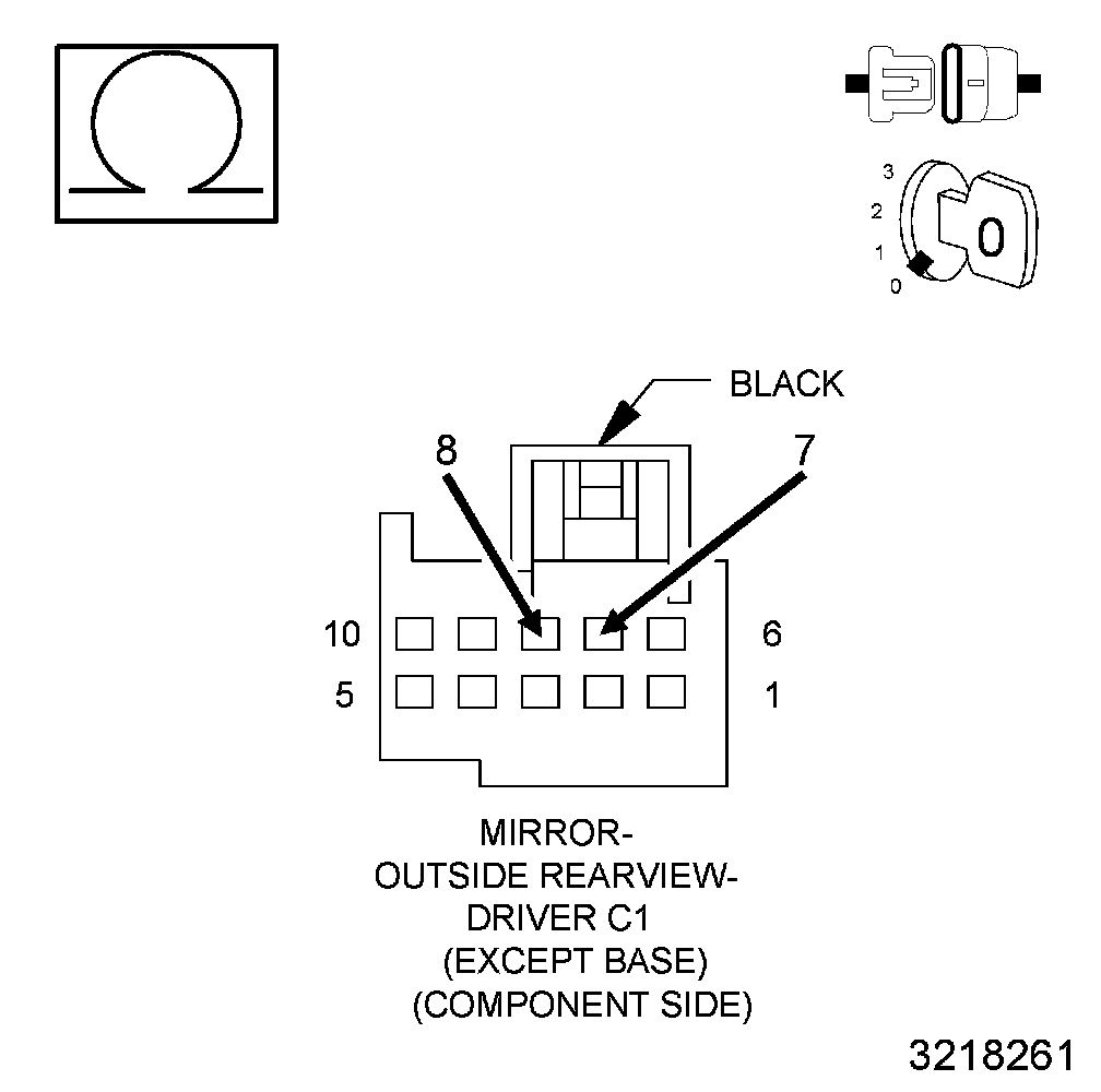 - Repair all circuits with a resistance below 20K Ohms for a short to the (P67) Driver Mirror Vertical Position Signal circuit. If the wiring harness and connectors are okay, replace the Driver Outside Rearview Mirror. Outside Rearview Mirror - Removal.
