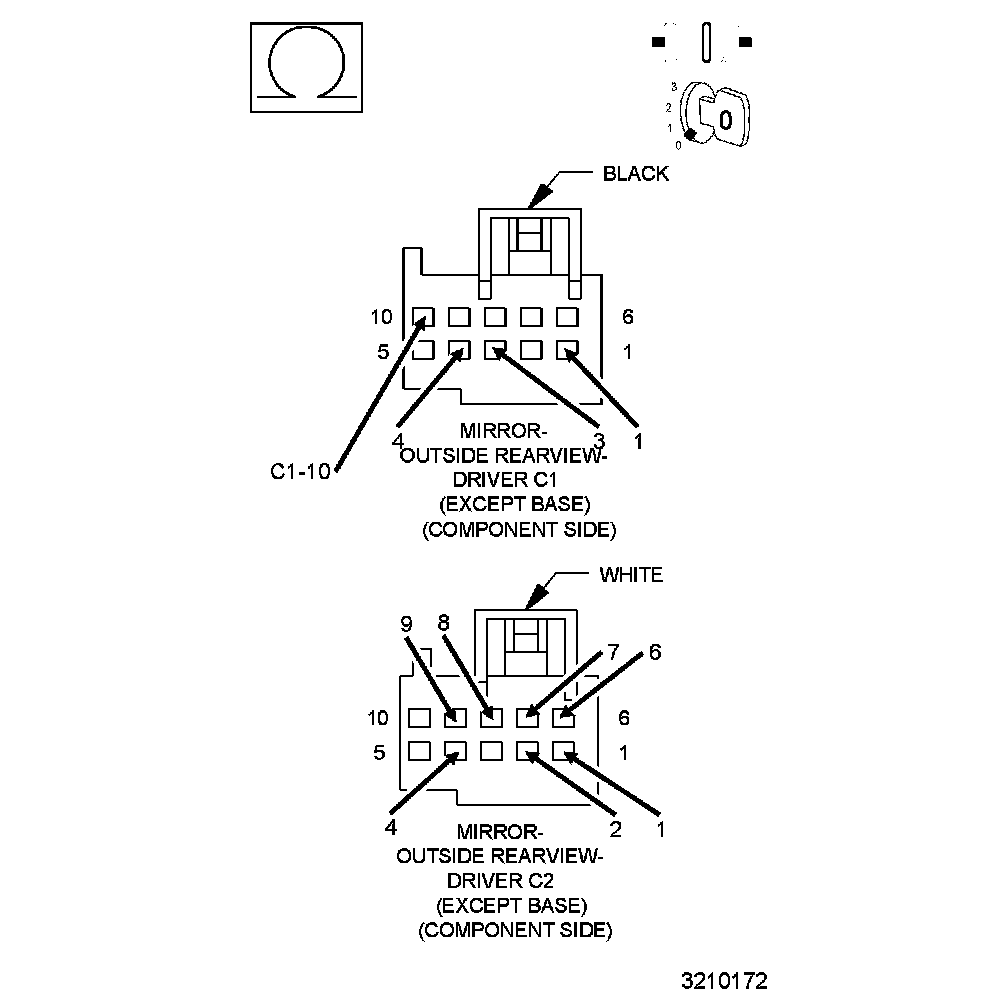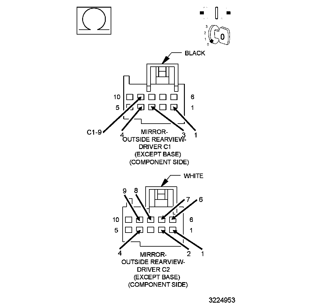 - The conditions that caused this code to set are not present at this time. For vehicle's equipped with folding outside rearview mirrors, repeat test with mirror folded. If DTC is now active, Go To 2. Otherwise, using the wiring diagrams as a guide, check all related splices and connectors for signs of water intrusion, corrosion, pushed out or bent terminals and poor pin fit. Repair as necessary.