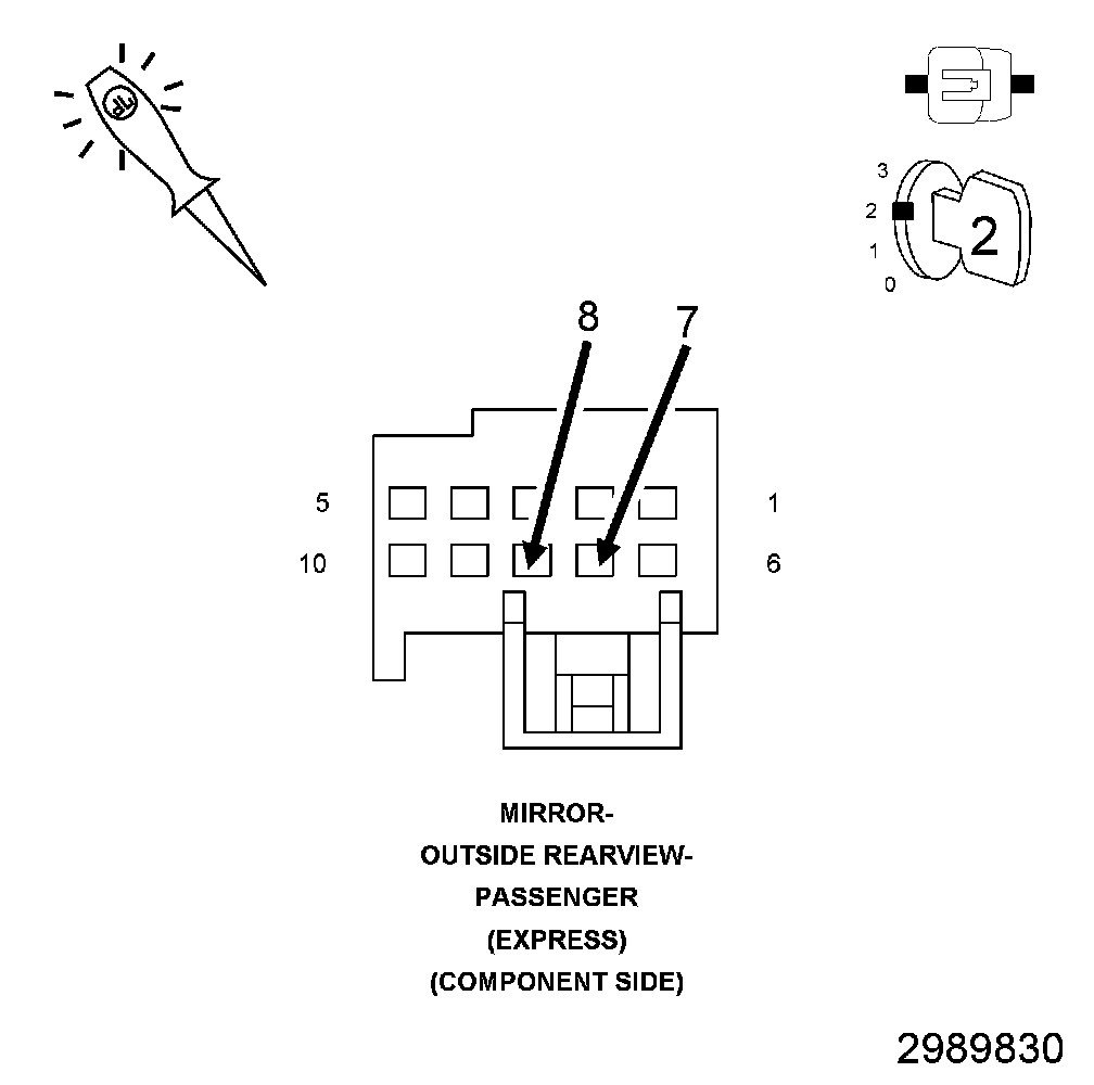- The conditions that caused this code to set are not present at this time. For vehicle's equipped with folding outside rearview mirrors, repeat test with mirror folded. If DTC is now active, Go To 2. Otherwise, use the wiring diagram/schematic as a guide and inspect the wiring and connectors.