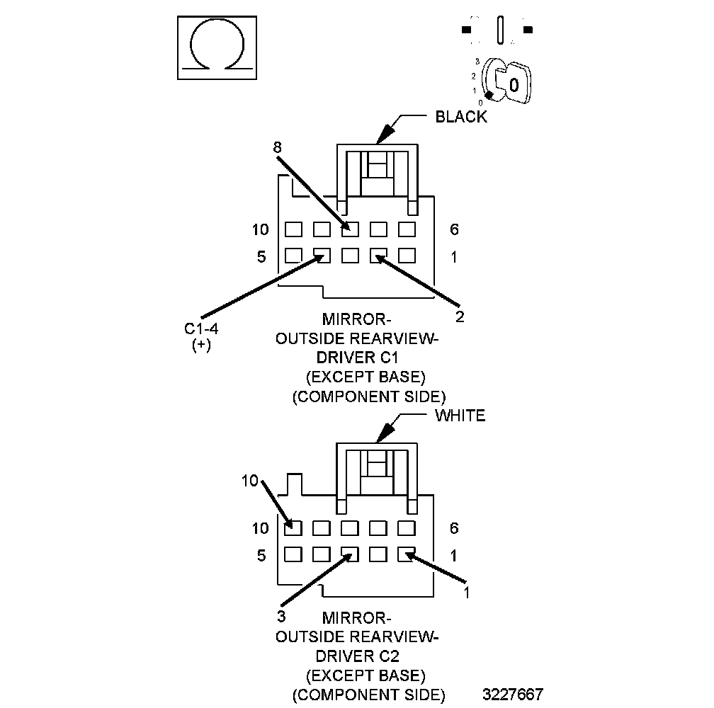 1. Measure the resistance between the (P135) Driver Auto Day/Night Mirror Signal circuit (C1-4) and all designated Ground and Return circuits.