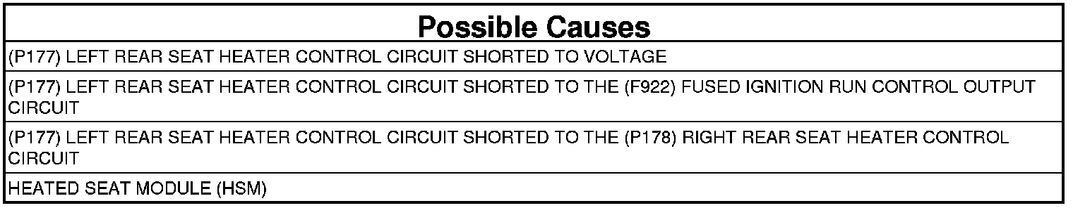 - Repair the (P177) Left Rear Seat Heater Control circuit for a short to voltage.