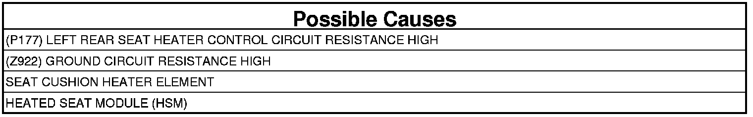 - Repair the (P177) Left Rear Seat Heater Control circuit for high resistance.