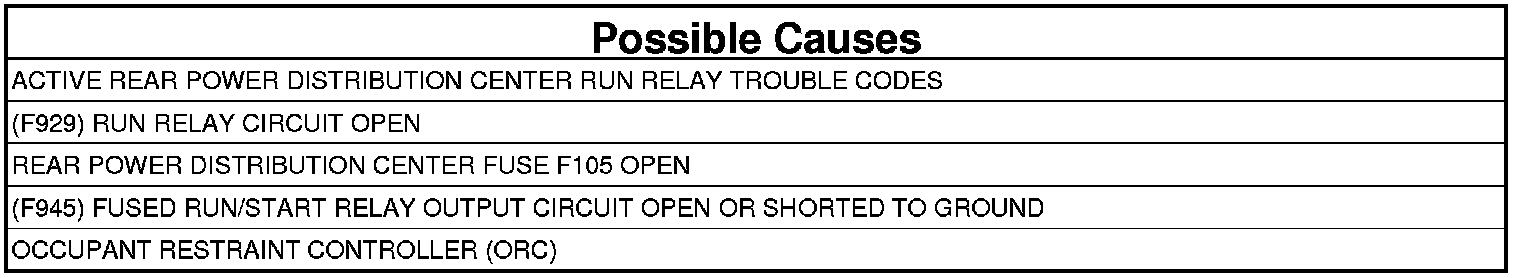 - Replace the Rear Power Distribution Center Airbag Run Circuit (F105) Fuse.
