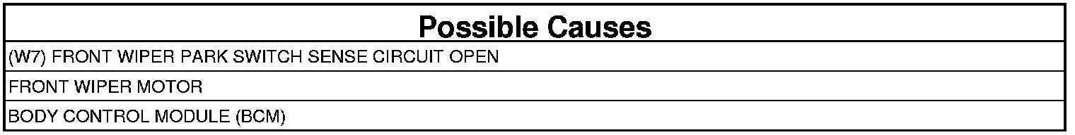 - Repair the open in the (W7) Front Wiper Park Switch Sense circuit.