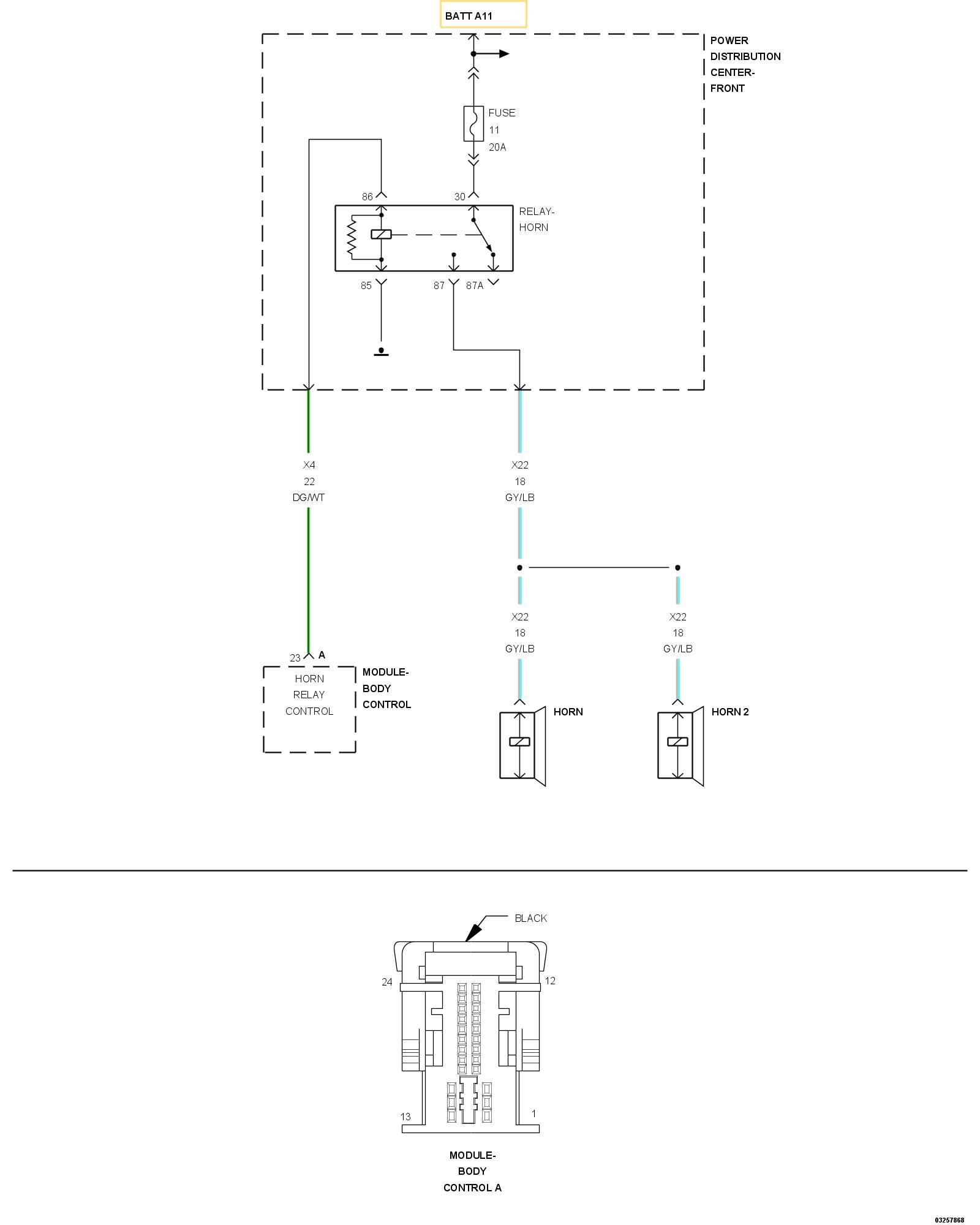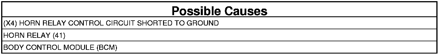 - Repair the short to ground in the (X4) Horn Relay Control circuit.