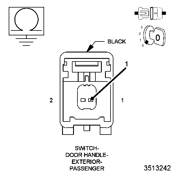 1. Remove the Passenger Exterior Door Handle and disconnect the switch harness connector. Front Exterior Handle - Removal.