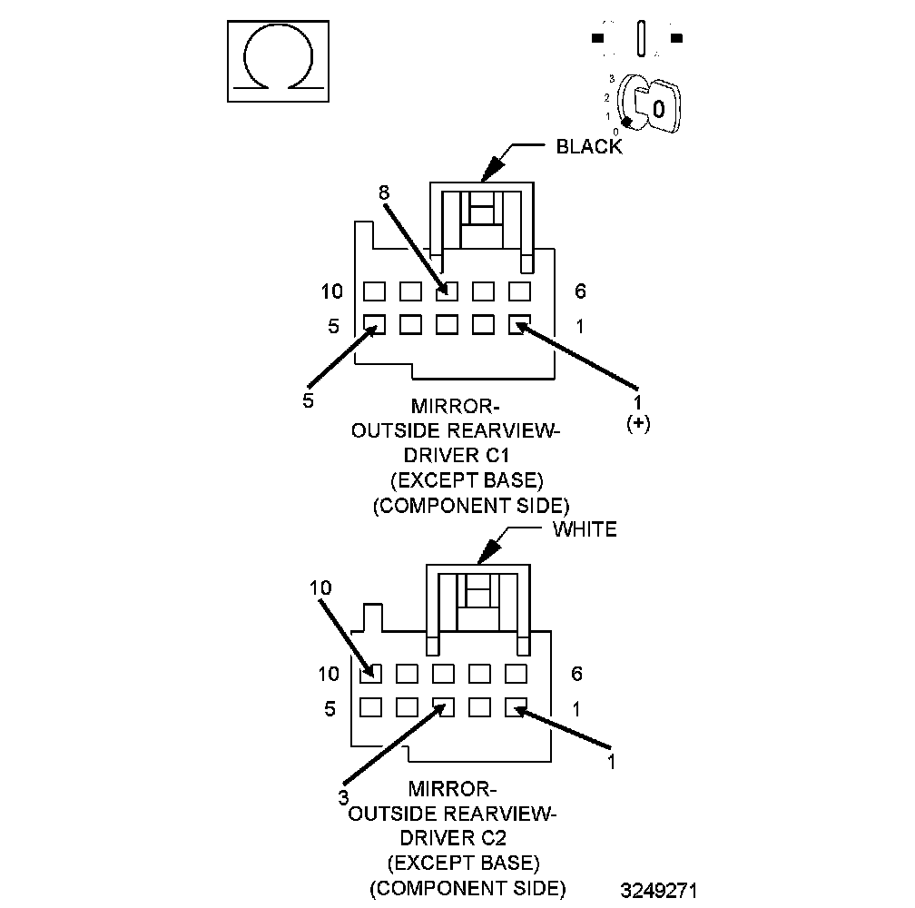 - The conditions that caused this code to set are not present at this time. For vehicle's equipped with folding outside rearview mirrors, repeat test with mirror folded. If DTC is now active, Go To 2. Otherwise, use the wiring diagram/schematic as a guide and inspect the wiring and connectors.