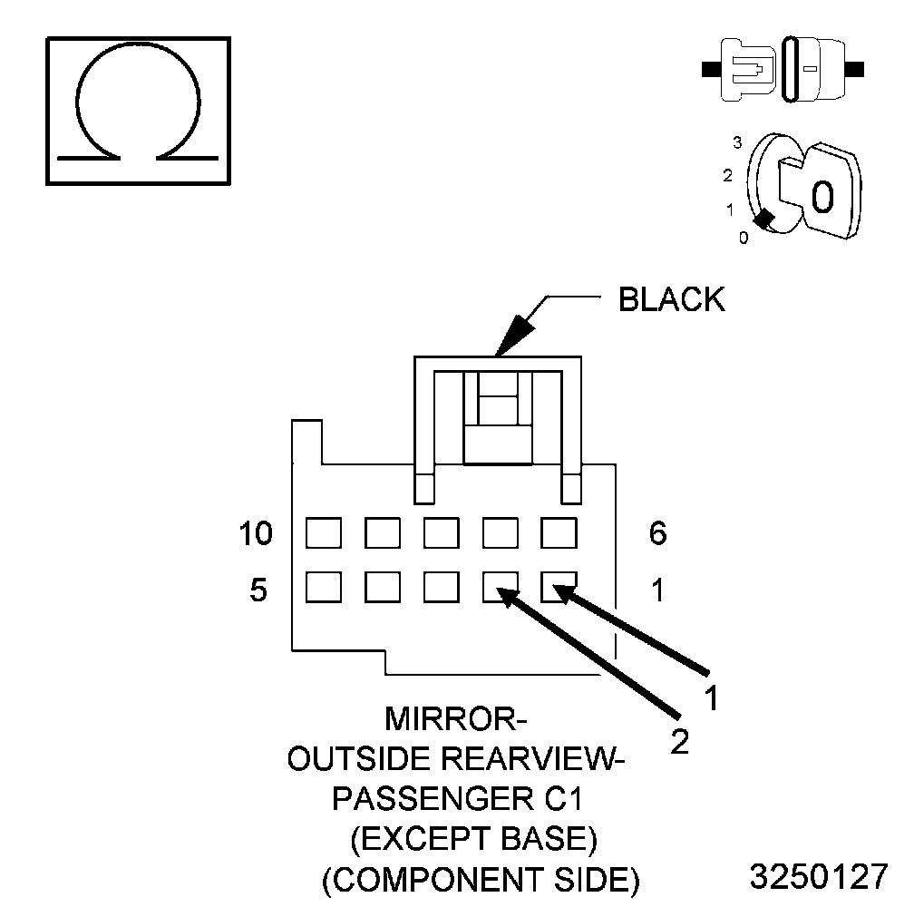 - The conditions that caused this code to set are not present at this time. For vehicle's equipped with folding outside rearview mirrors, repeat test with mirror folded. If DTC is now active, Go To 2. Otherwise, use the wiring diagram/schematic as a guide and inspect the wiring and connectors.