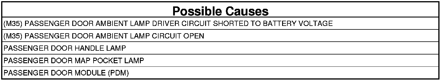 2. (M35) PASSENGER DOOR AMBIENT LAMP DRIVER CIRCUIT SHORTED TO VOLTAGE