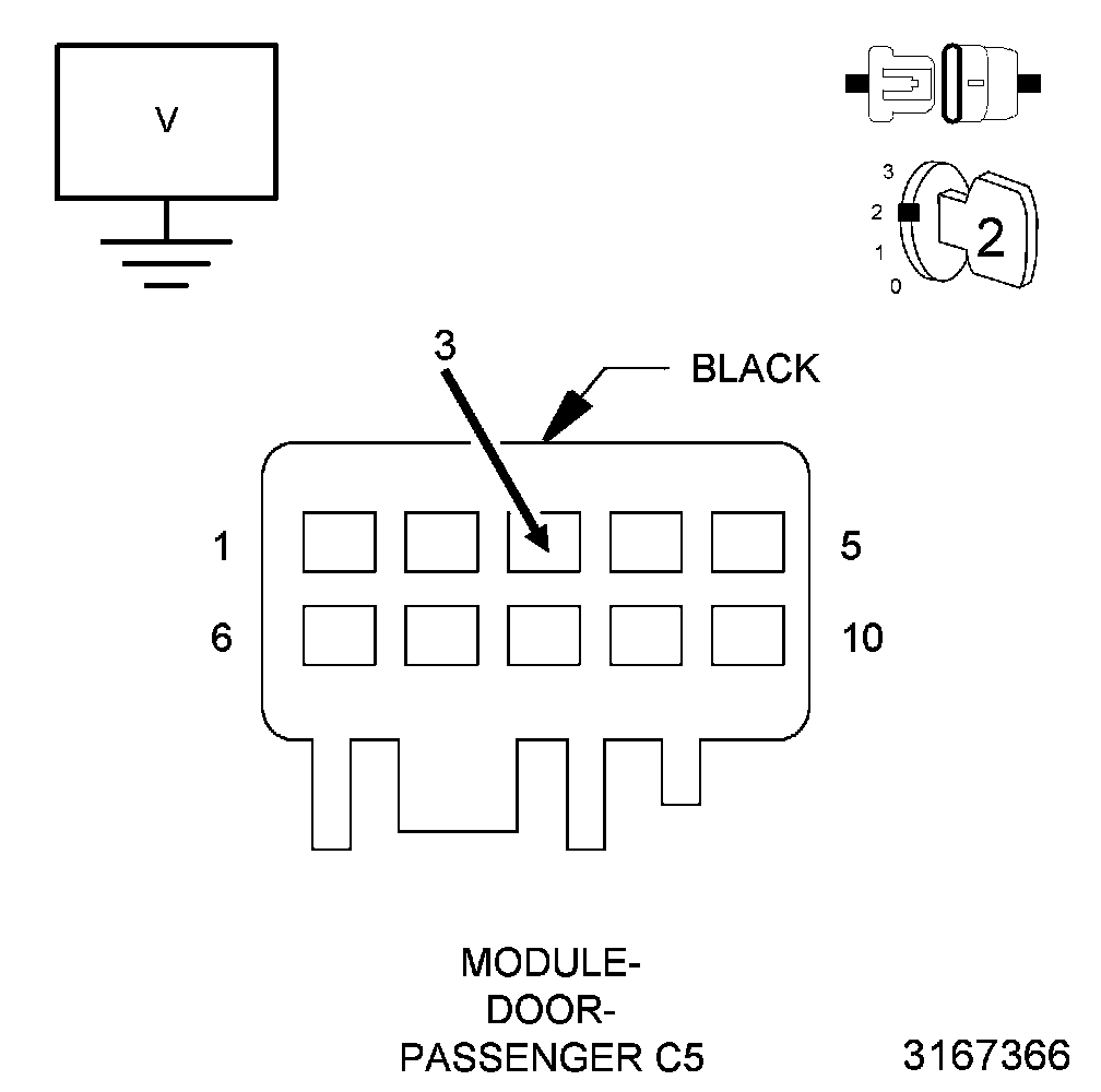 6. Measure the voltage between ground and the (M35) Passenger Door Ambient Lamp Driver circuit in the Passenger Door Module C5 harness connector.