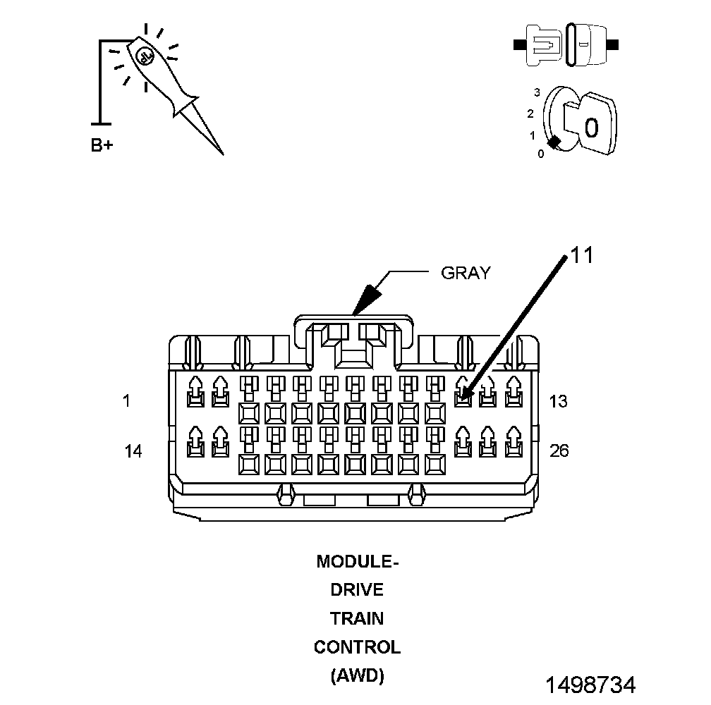 3. Using a 12-volt test light connected to ground, check the (A913) Fused B(+) circuit.