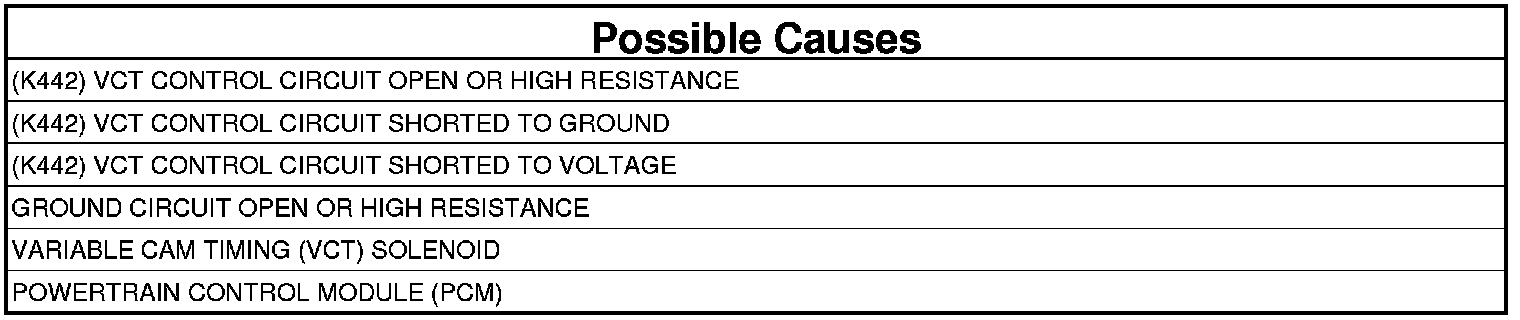 - Repair the short to ground in the (K442) VCT Control circuit.