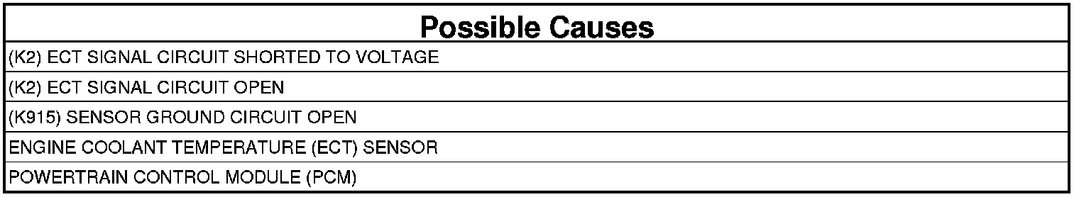- Repair the short to voltage in the (K2) ECT Signal circuit.