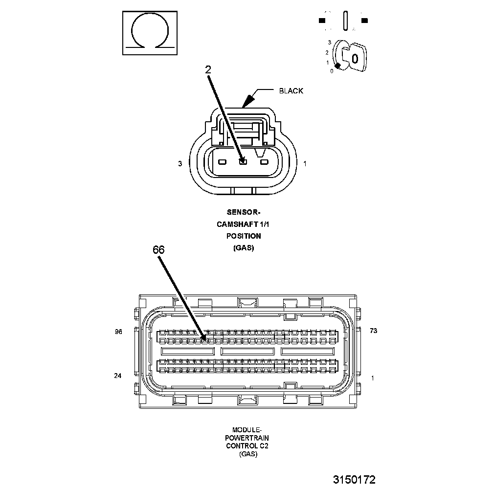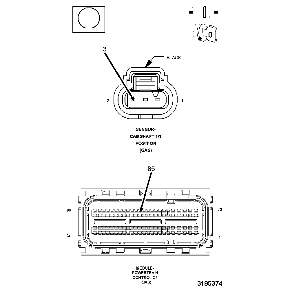 1. Using the wiring diagram/schematic as a guide, inspect the wiring and connectors between the Camshaft Position Sensor and the Powertrain Control Module (PCM).