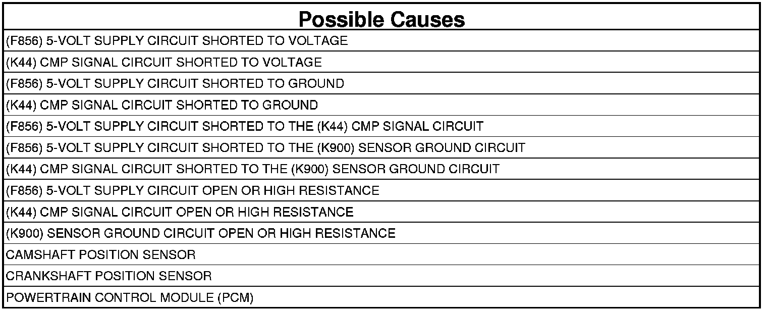 - Repair the (F856) 5-volt Supply circuit for a short to the (K44) CMP Signal circuit.