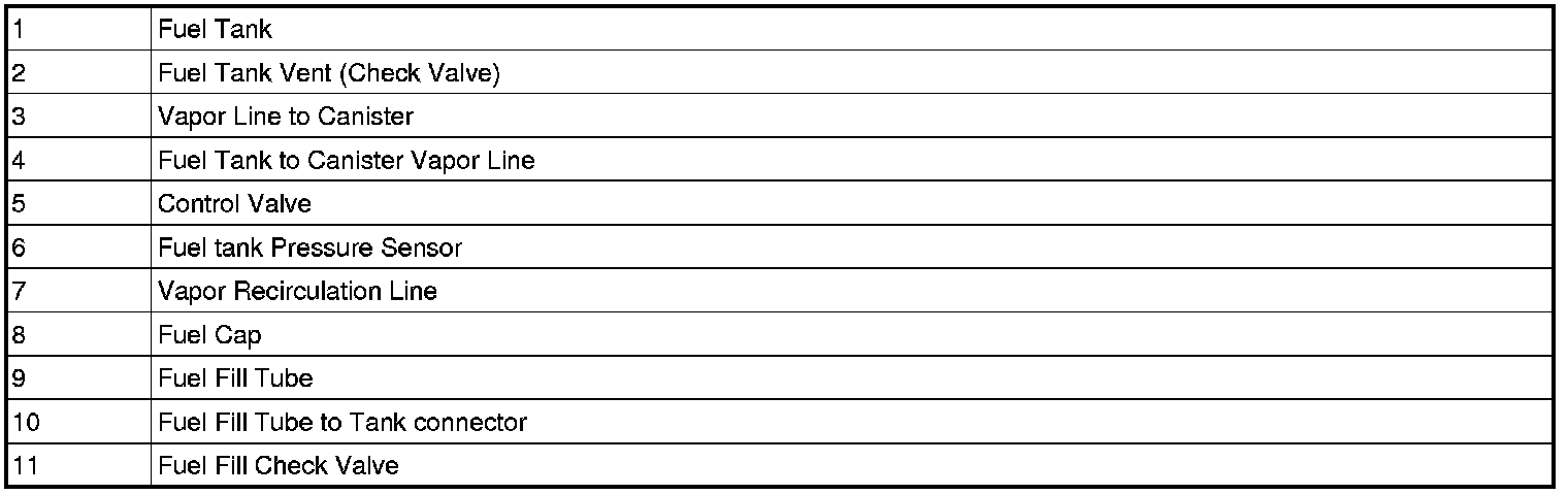 NOTE: The Evaporative System is divided into three zones. A leak from any of these zones can cause this DTC to set. The lists below specify the possible leak points in that specific zone. For further assistance see the Zone Identification Charts below.