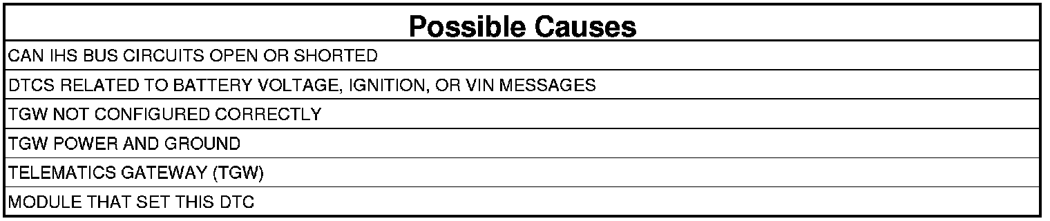 NOTE: Check for TGW configuration, CAN IHS hardware electrical, VIN Missing/Mismatch, battery or ignition related DTCs.