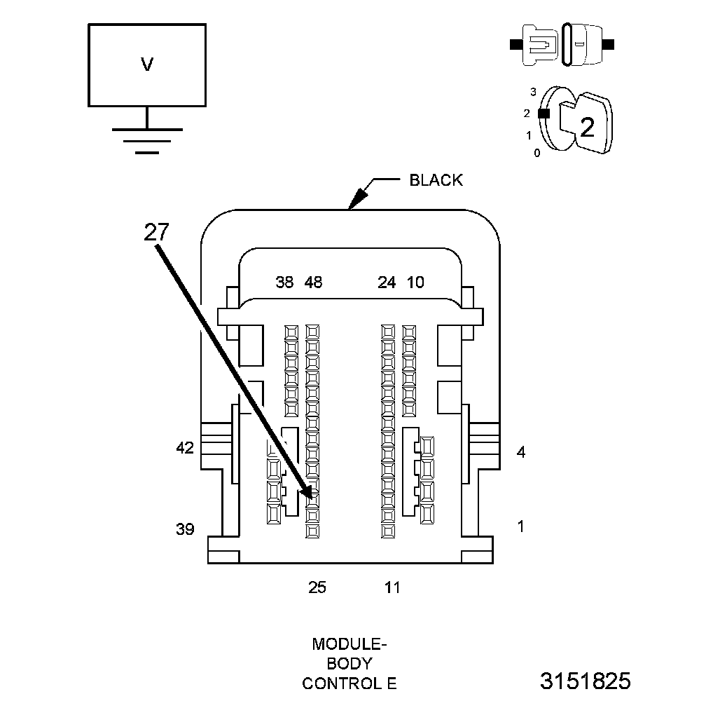 3. Measure the voltage between ground and the (F20) Ignition Run-Start Output circuit.