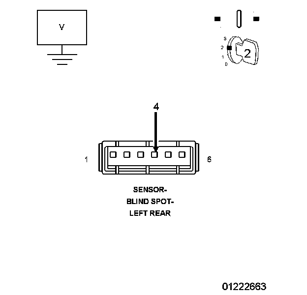 2. Using an Ohm meter, measure the resistance between ground and the (Z922) Ground circuit at the Left Rear Blind Spot Sensor harness connector.