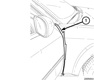 3. Using masking tape or equivalent, apply a strip of tape (1) to the rear fender edge near the door for protection.