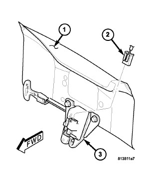 4. Disconnect the connector (2) of the body wire harness take out for the deck lid (1) from the latch connector receptacle (3).