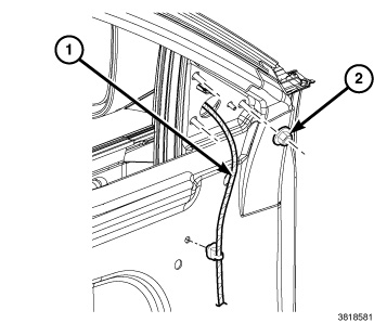 3. Install the three nuts (1) that secure the mirror to the front door. Tighten the nuts to 7 Nm (60 in. lbs.).
