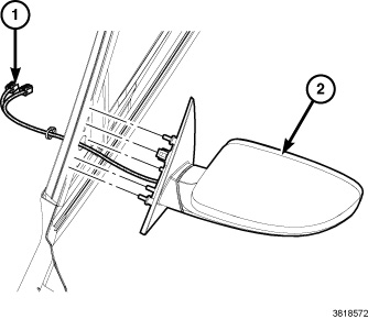 1. Feed the mirror wire harness (1) through the access hole in the mirror flag.
