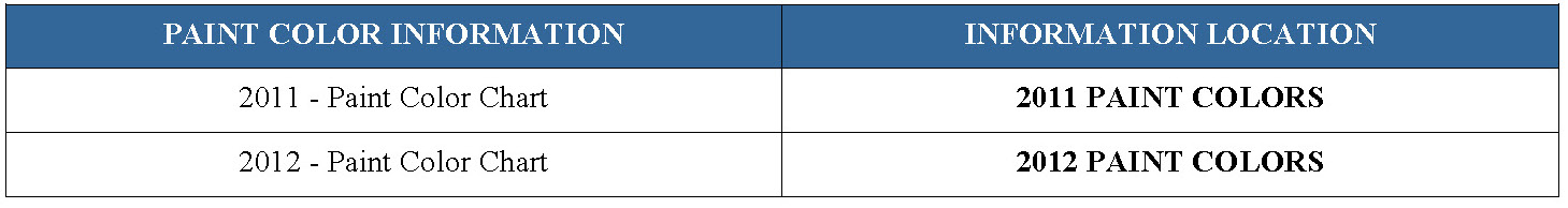 2012 PAINT COLORS