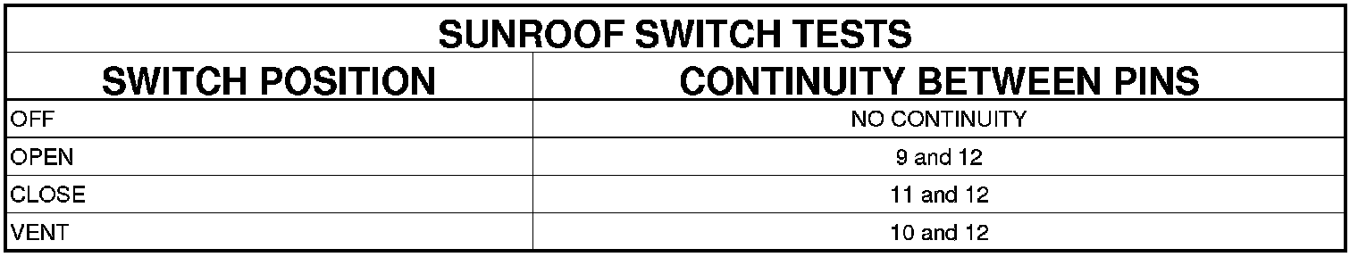 Sunroof / Moonroof Switch: Testing and Inspection