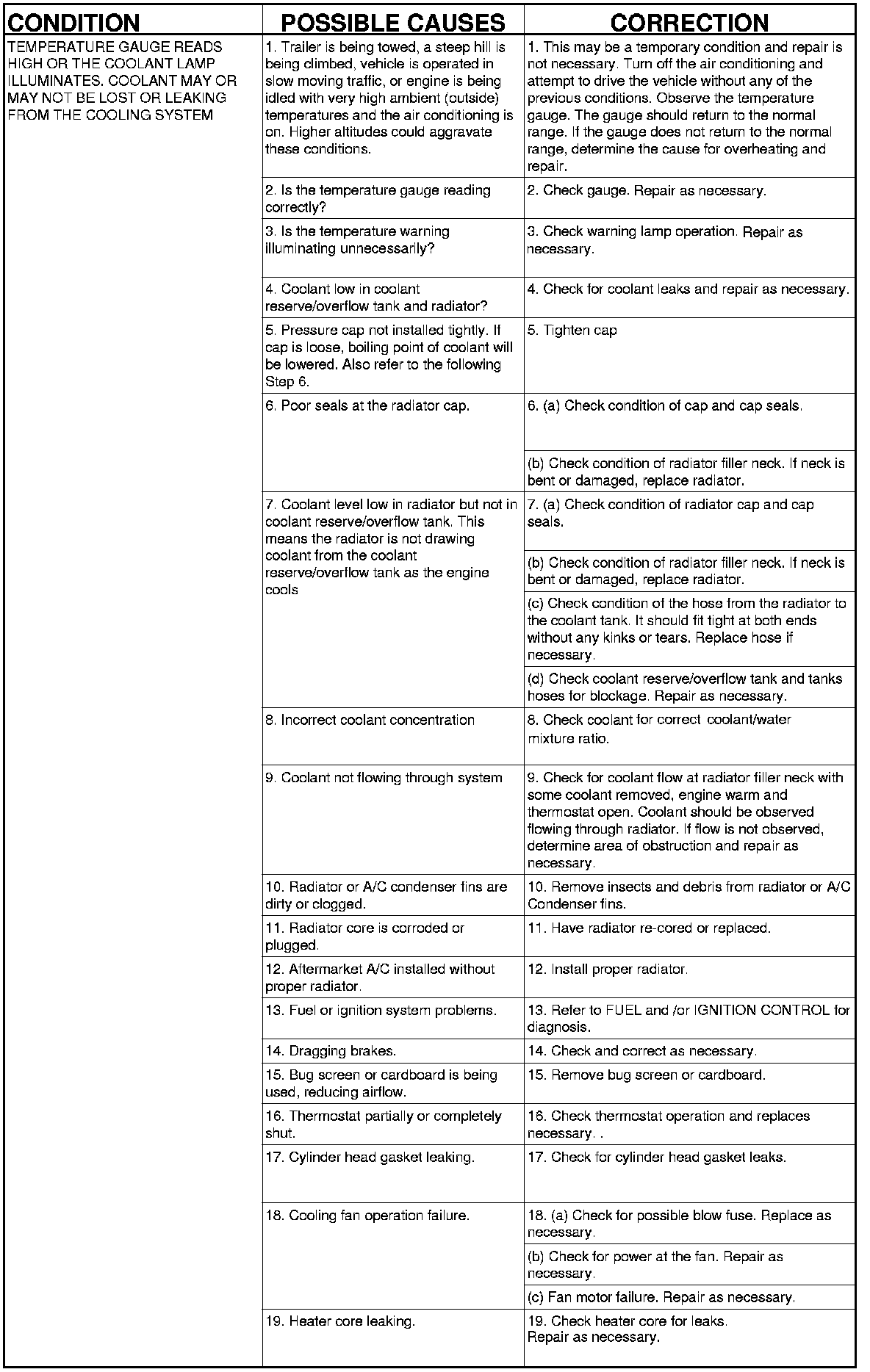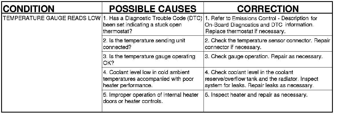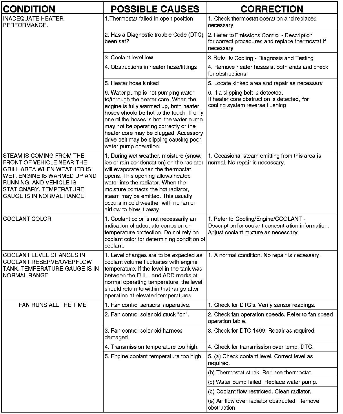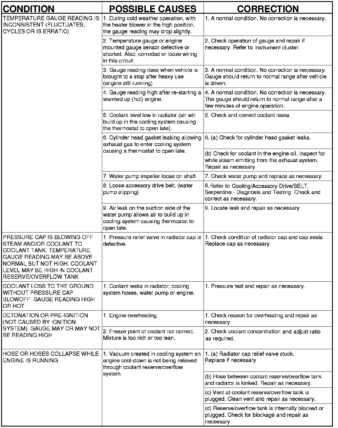 NOTE: If investigation reveals none of the previous items as a cause for an engine overheating complaint, refer to following Cooling System Diagnosis charts.