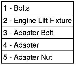 4. Install the engine lift fixture (2) special tool and adapter.