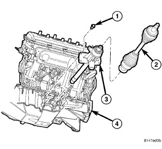 15. Remove the differential support bracket (1) from the differential to engine block.