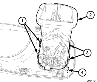 2. Engage the four retaining tabs (2 and 4) that secure the air outlet to the instrument panel cover (3).