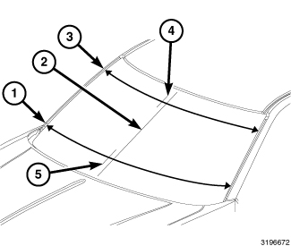 1. Take a measurement (3) across the top of the windshield using the lower edge of the tint band on each side of the glass as the reference points.