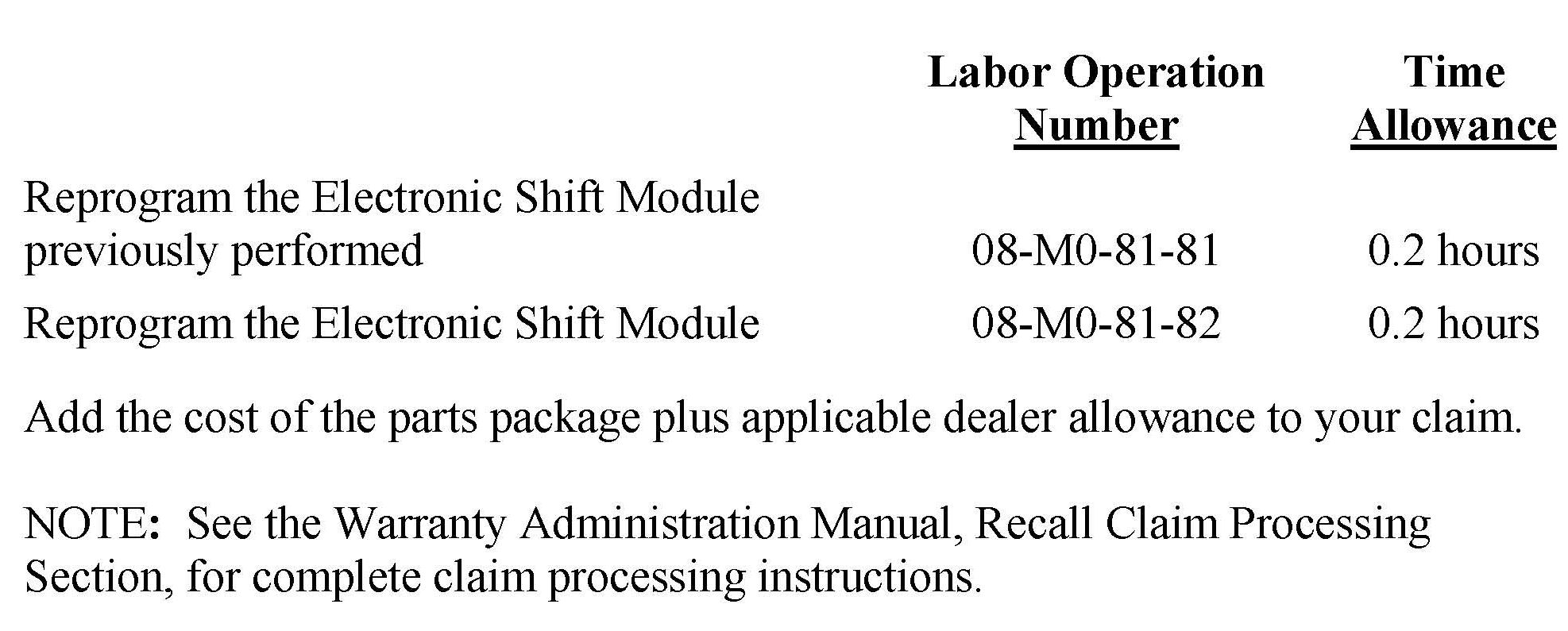 The Electronic Shift Module (ESM) must be reprogrammed with new software.