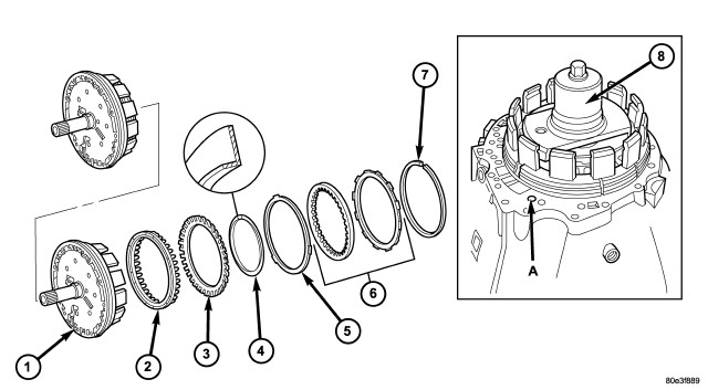 3. Remove multiple-disc pack (6) and disc spring (5) from outer multiple-disc carrier. Note which clutch disc is removed just prior to the disc spring (5) for re-assembly. If the clutch discs are re-used, this disc must be returned to its original position on top of the disc spring.