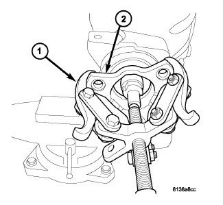 5. Using Puller (1), remove pinion flange (2).