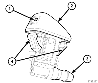 An integral diaphragm type check valve is contained within the body of each nozzle. The washer plumbing fittings (3) for the washer nozzles extend below the hood panel and are accessible from the engine compartment.