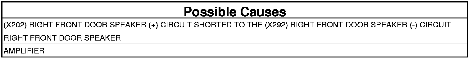 - Repair the (X202) Right Front Door Speaker (+) circuit, and the (X292) Right Front Door Speaker (-) circuit for a short together.