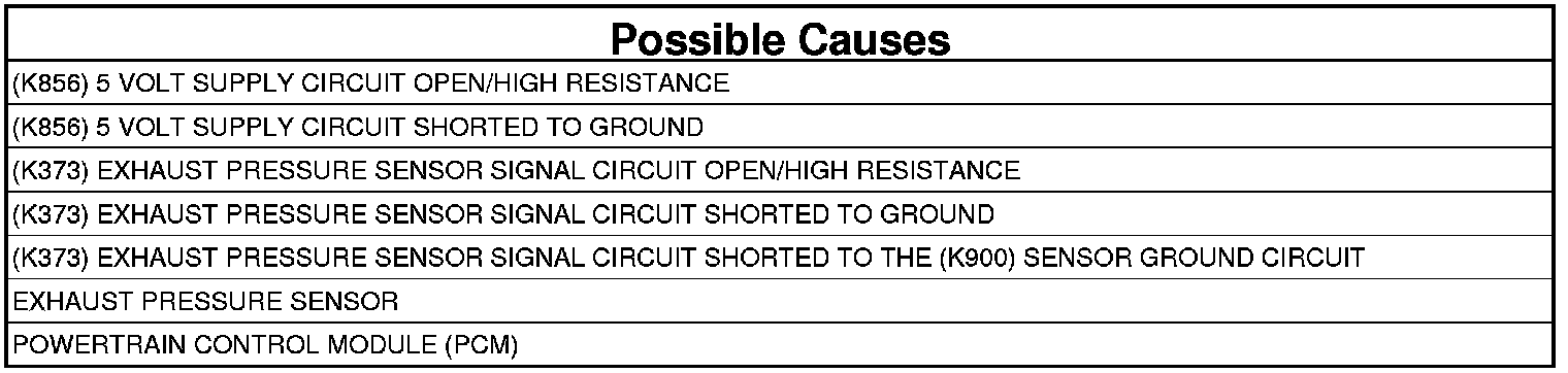 - Repair the short between the (K373) Exhaust Pressure Sensor Signal circuit and the (K900) Sensor Ground circuit.