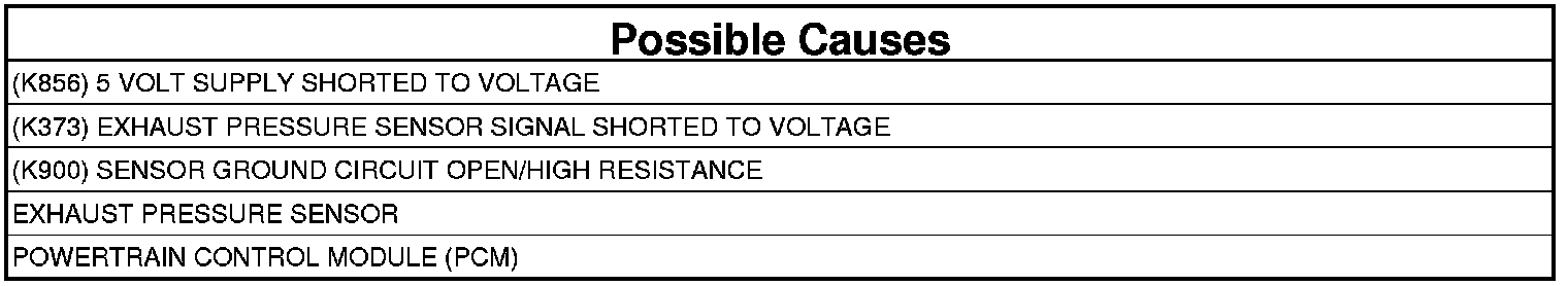 2. (K373) EXHAUST PRESSURE SENSOR SIGNAL CIRCUIT SHORTED TO VOLTAGE