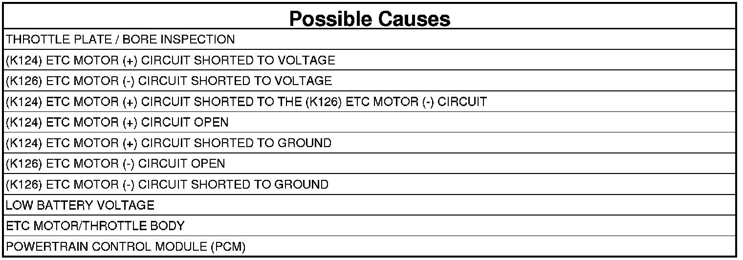 5. (K124) ETC MOTOR (+) CIRCUIT SHORTED TO THE (K126) ETC MOTOR (-) CIRCUIT