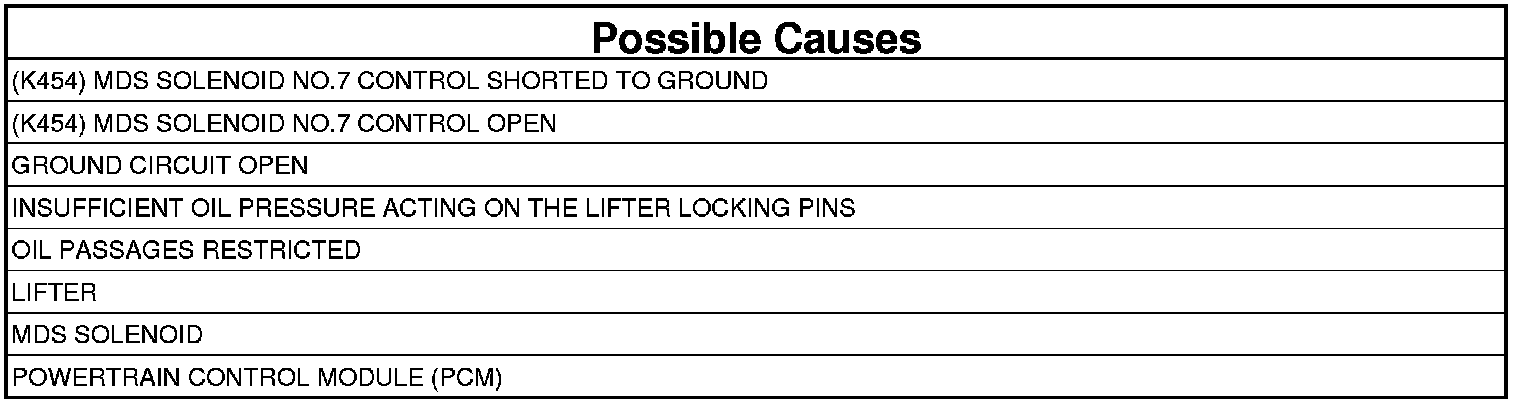 - Repair the short to ground in the (K454) MDS Solenoid No.7 Control circuit between the PCM harness connector and the C101 harness connector.
