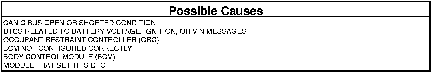 BUS messages not received from the Occupant Restraint Controller (ORC) BUS over the CAN C circuit for approximately two to five seconds.