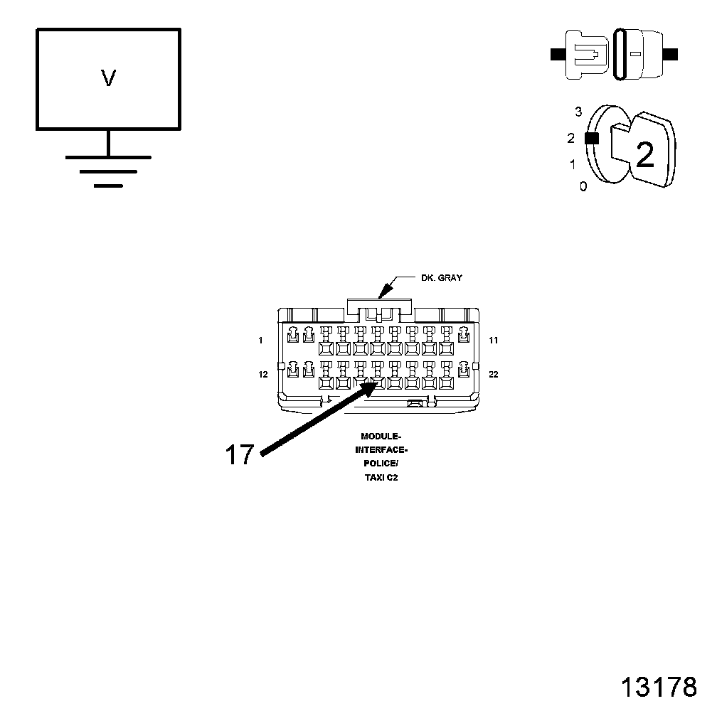 4. Measure the voltage of the (W523) Driver Door Ajar Switch Sense circuit between ground and the VSIM C1 harness connector.