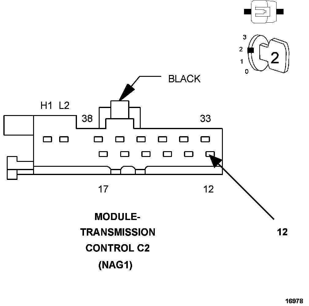 2. Using a Lab Scope, backprobe the (T70) Input Speed Sensor 1 (N2) Signal circuit at the TCM C2 harness connector.
