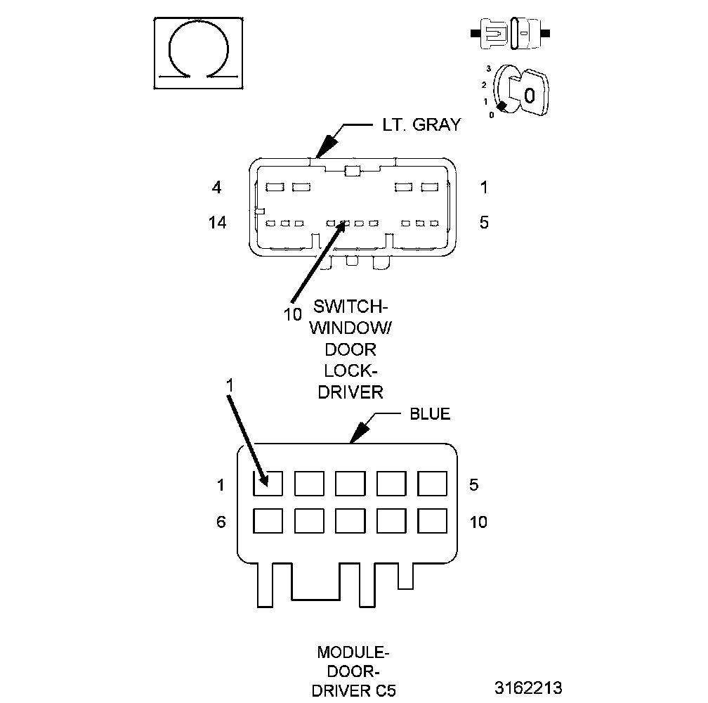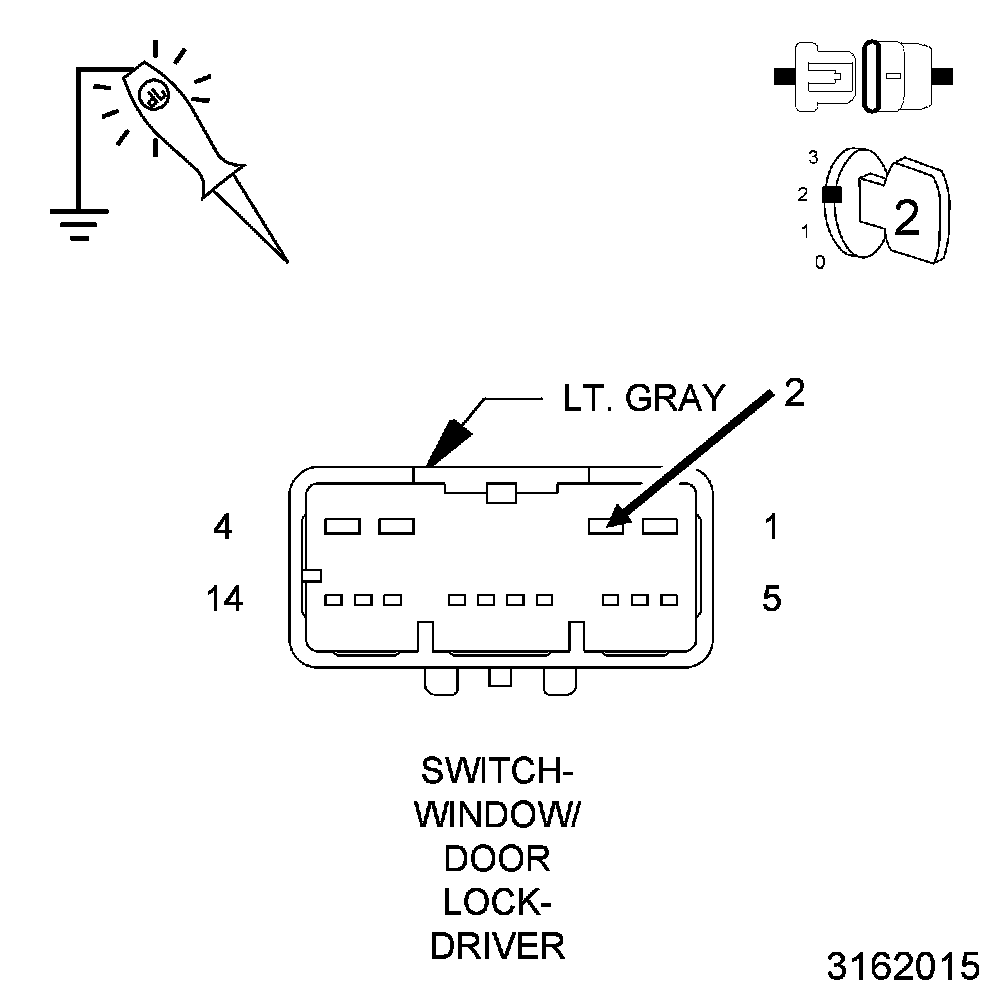 1. Using a 12-volt test light connected to 12-volts, check the (D512) Driver Door LIN Bus Return circuit in the Window Switch harness connector.