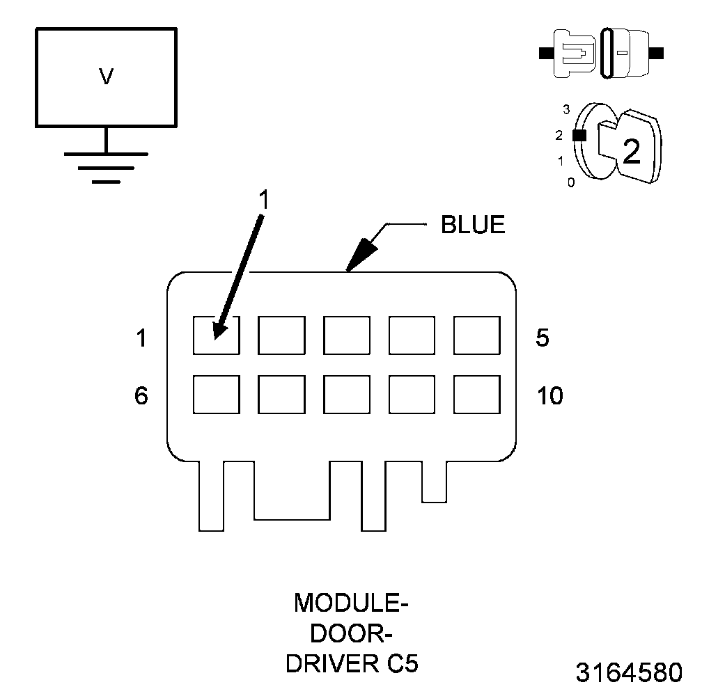 2. Measure the voltage between Ground and the (D903) Driver Door LIN Bus circuit in the Door Module C5 harness connector.