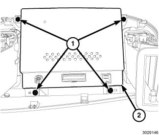 2. Connect the harness connectors (2 & 3) to the rear of the Integrated Center Stack (ICS) screen module (1).