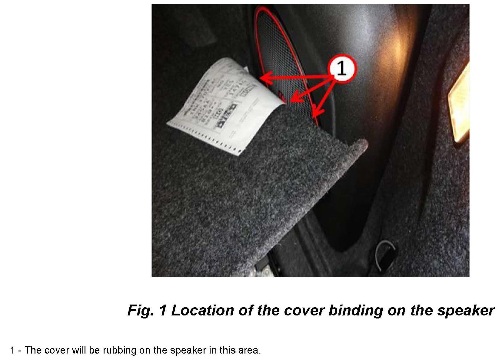 Inspect the spare tire cover if it's binding/rubbing on the speaker when opening the cover, is it binding/rubbing on the speaker? (Fig. 1)